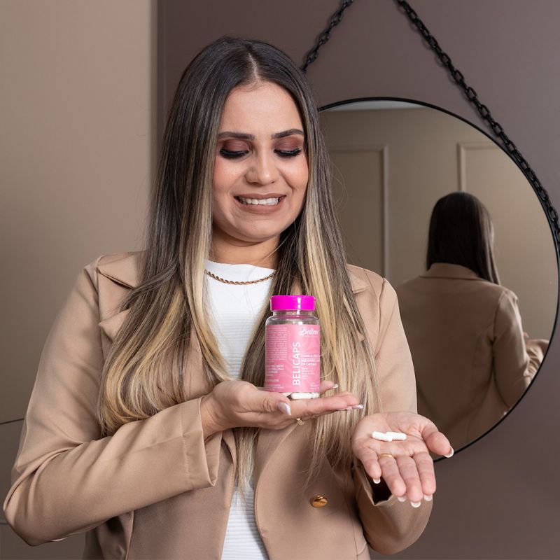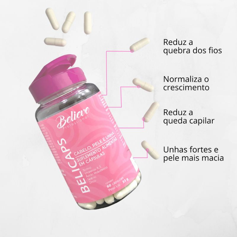 O Belicaps foi desenvolvido para tratar o cabelo de dentro pra fora, fortalecendo a raiz e devolvendo saúde, crescimento e resistência aos fios.