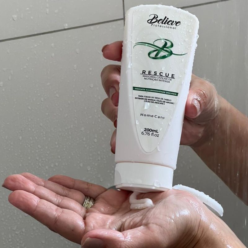 O Kit Rescue Believe foi desenvolvido para repor os lipídios essenciais dos fios, devolvendo brilho, maciez e controle desde a primeira aplicação.