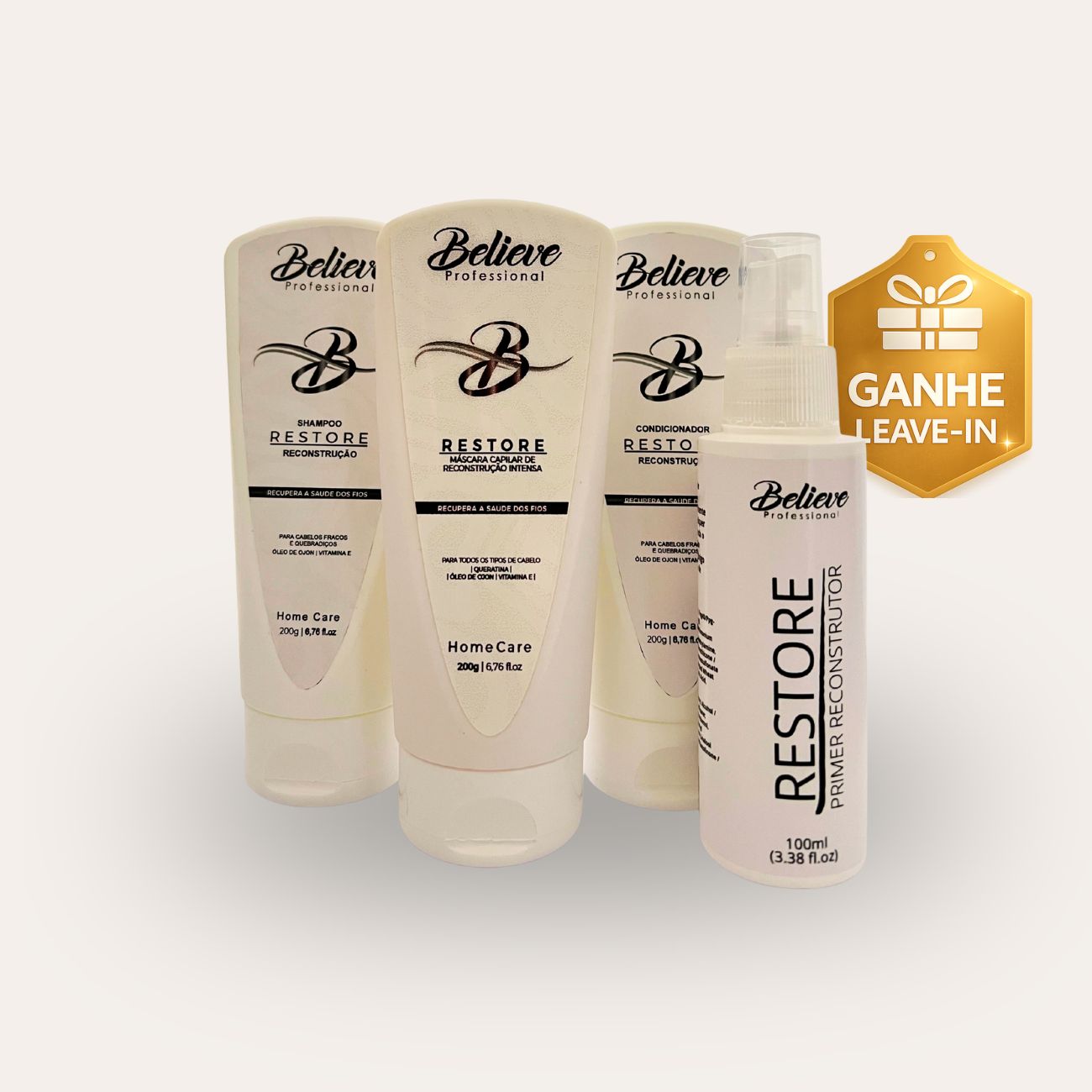 O Kit Restore Believe foi desenvolvido para restaurar a fibra capilar de dentro para fora, devolvendo força, estrutura e saúde aos fios danificados.