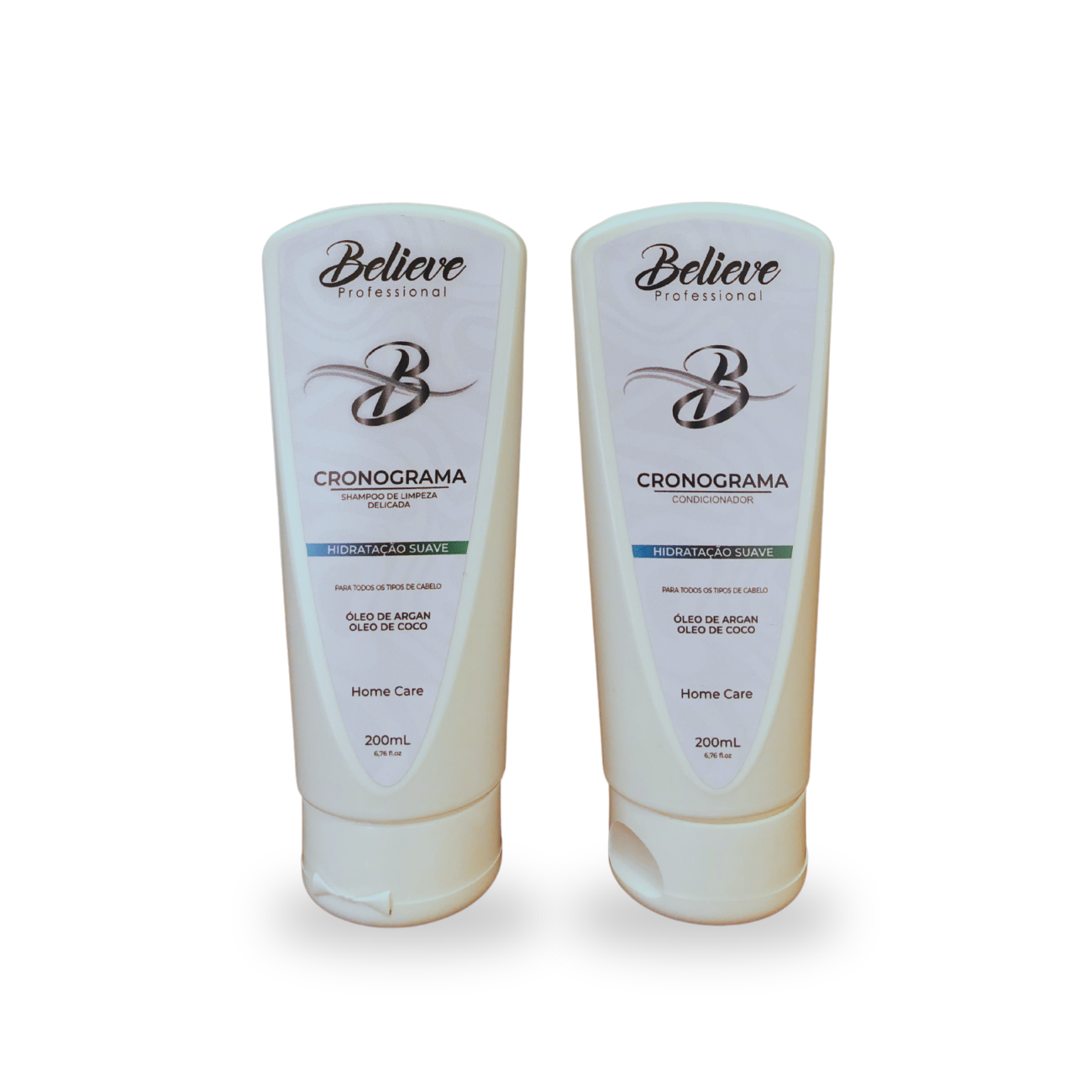 O Kit Shampoo e Condicionador Cronograma Capilar da Believe Professional foi desenvolvido para proporcionar uma hidratação suave e eficaz, ideal para todos os tipos de cabelo e perfeito para uso diário.
