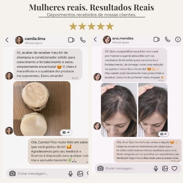 Desde as primeiras aplicações você sente o cabelo mais forte. O crescimento se torna visível com o uso contínuo.