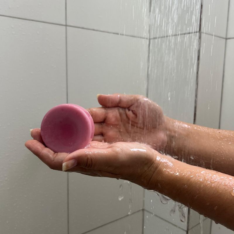 Após o uso do shampoo sólido Revitalize, deslize o condicionador no comprimento e pontas, evitando tocar na raiz. Massageie suavemente até sentir os fios emolientes, sedosos e completamente alinhados. Ao enxaguar, você percebe o cabelo leve, solto e com brilho visível ainda no banho.