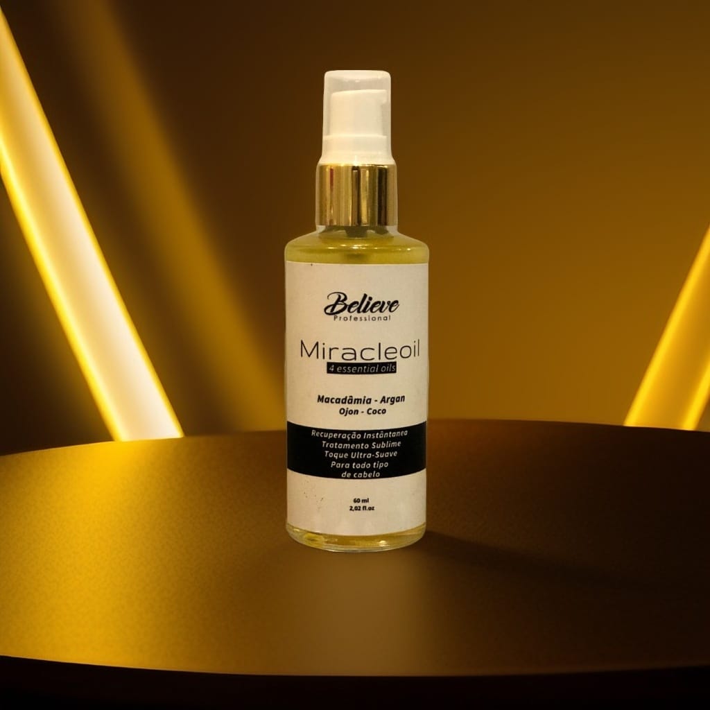 O Miracleoil Believe Professional é um blend luxuoso de 4 óleos essenciais poderosos – Macadâmia, Argan, Ojon e Coco – desenvolvido para proporcionar recuperação instantânea, toque ultra-suave e brilho radiante aos cabelos.